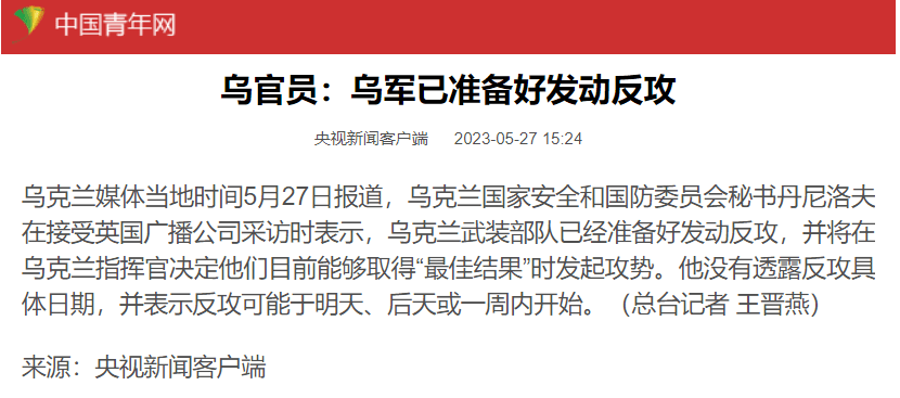 到6月上旬、最迟中旬开始,乌克兰军力在双方控制线的攻击也将全面开始。