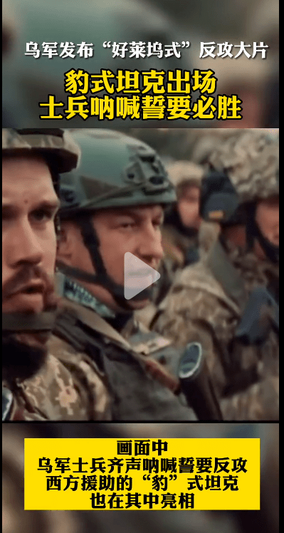27日同一天,在媒体上被打死打残无数次的乌克兰武装部队总司令扎卢日尼 在社交媒体发布一段“ 乌克兰是我的祖国 ···”的“好莱坞”式的反攻宣传片,片中有豹-2坦克, 士兵们呐喊出征必胜。