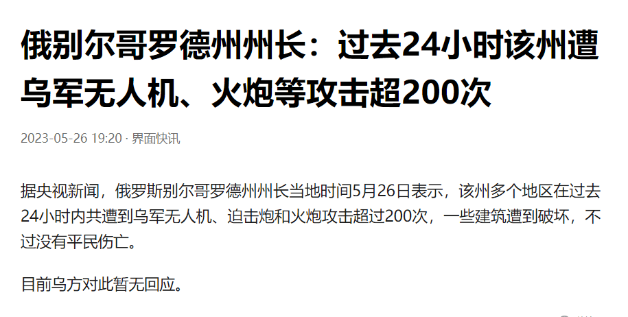 下面这则消息,足以说明乌克兰现在对俄边境地带攻击的猛烈程度——