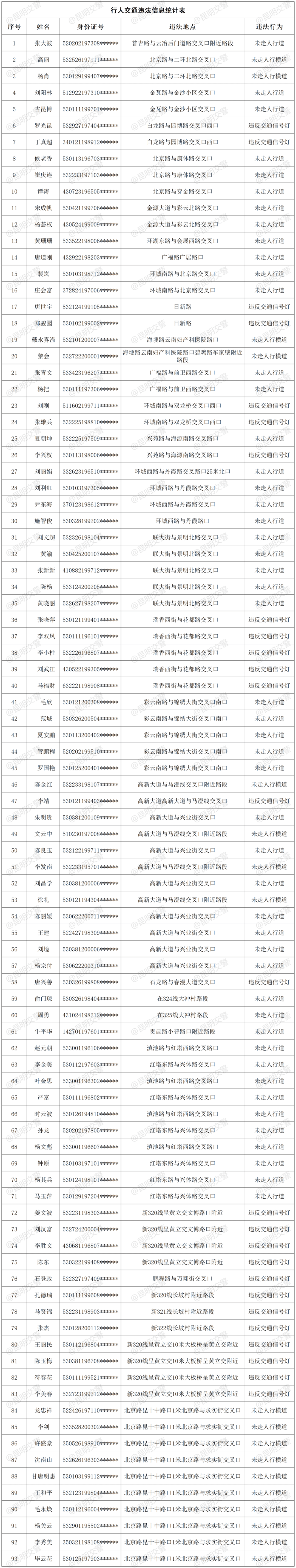自2019年9月开始,昆明市公安局交警支队在推进治理突出交通违法乱象、曝光不文明行为、开展文明劝导等措施的同时,着力整治行人闯红灯等交通违法行为,并通过昆明交警“双微”平台进行“无码”曝光,进一步改善城市道路交通秩序,提高全民文明交通意识和守法意识。