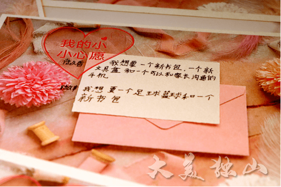 随后,在爱心餐厅,志愿者引导孩子们填写心愿卡。“我想要一个新书包、新文具盒。”“我想要一个足球、一个篮球。”“我想考上清华大学。”……一张张心愿卡上,孩子们用稚嫩的笔迹写下了自己的愿望与理想。
