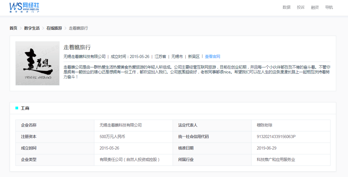 网经社企业库(COP.100EC.CN)显示,走着瞧旅行隶属于无锡走着瞧旅行社有限公司,成立于2015年5月26日,法定代表人为穆陈劲琼,公司位于江苏省无锡市新吴区。该公司称其旗下主打半自由行跟团游爆款,不做海量产品,去粗取精,先做精一条明星线路,再不断覆盖全球热门目的地。