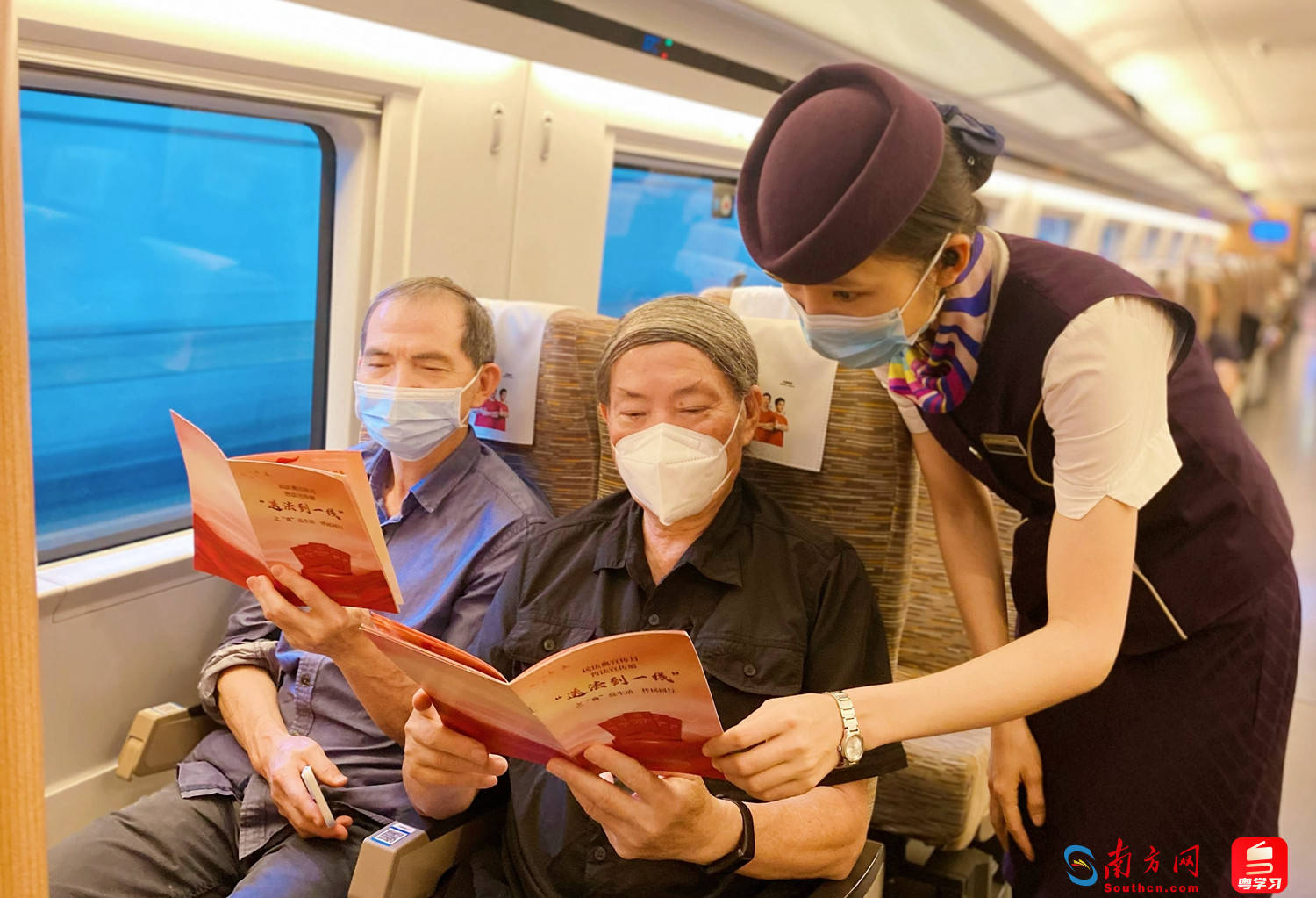 上午9时15分,广九客运段高铁动四车队值乘深圳北开往邵阳的G6094次列车,列车长邓喜莺走进车厢,向旅客派发普法宣传手册,重点讲解运输合同、遗产继承等旅客比较关注的民法典相关规定。
