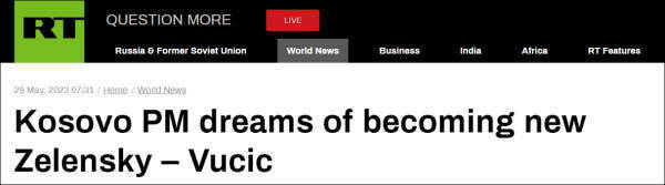 据“今日俄罗斯”(RT)报道,当地时间28日,塞尔维亚总统武契奇在接受该国PINK电视台采访时警告说,由于科索沃当局单方行动,或导致该地区局势进一步失控,“科索沃‘总理’库尔蒂”正梦想成为像乌克兰总统那样的人。
