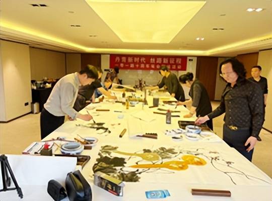 书画家们现场挥毫泼墨,以字传情、以画达意,参加本次活动的有曾福友、陈湘晖、李文斌、黄首占、魏春宣、甄诚、常新灿、于宗孝、程宝光、王相文、朱德华、马振国、刘运禄、刘成生、任南熹、张广荣、李建景、高岱潤、白杰、周伯涛等书画家,大家以中国传统文化书画艺术创作形式,展现丝路文化精神和文化魅力。