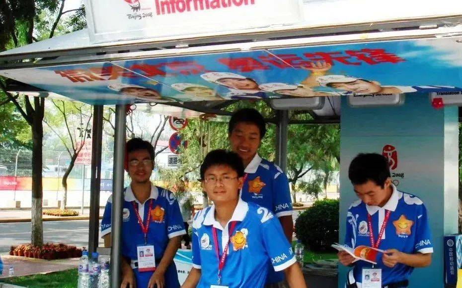 桂海潮(左二)曾担任2008年北京奥运会志愿者。图/北京航空航天大学公众号