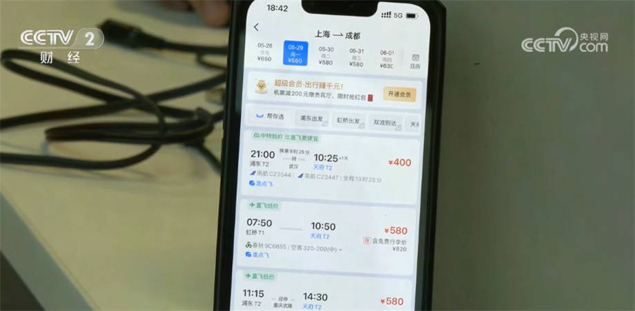 消费者 武杰:我现在人已经到上海了,准备乘坐我们的国产大飞机C919从上海虹桥飞往成都天府。我对C919大飞机一直非常感兴趣,所以一直非常关注,当时看到票之后,我第一时间就把这一张票锁定了,当时购买的是919元的经济舱票,加上机场建设费和燃油附加费,一共1029元。