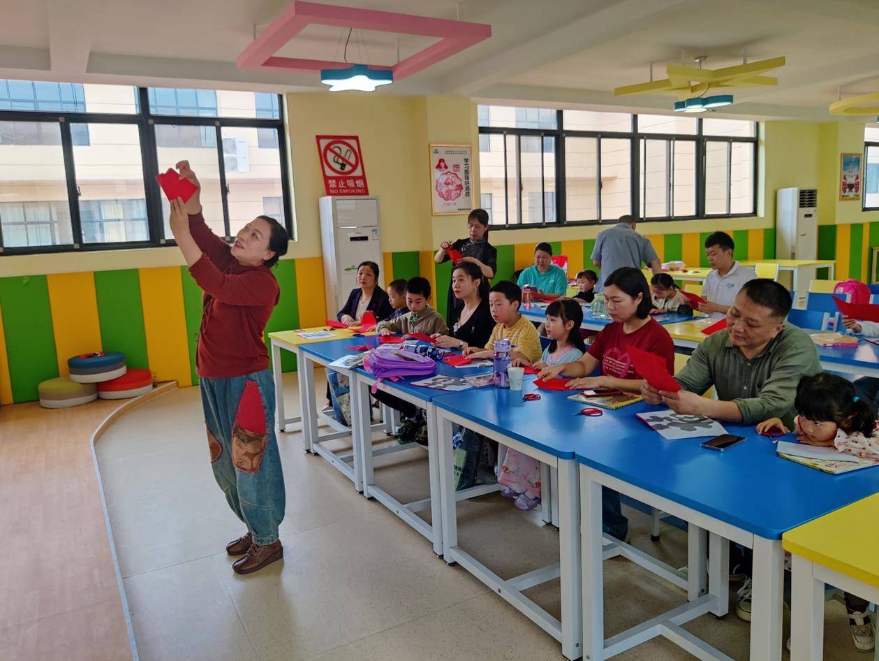 活动中,信阳市剪纸·叶雕传承人、商城县民间文艺家协会主席朱华梅现场授课,为大家介绍剪纸的方法和技巧,对剪纸的历史渊源和发展历程进行科普。家长和孩子们听完便开始创作,有的裁、有的画、有的折、有的剪,全神贯注,伴随着 “咔嚓”声和欢笑声,一张张红纸在大家的指尖上下摆动,不一会儿,一个个形态各异的作品映入眼帘。