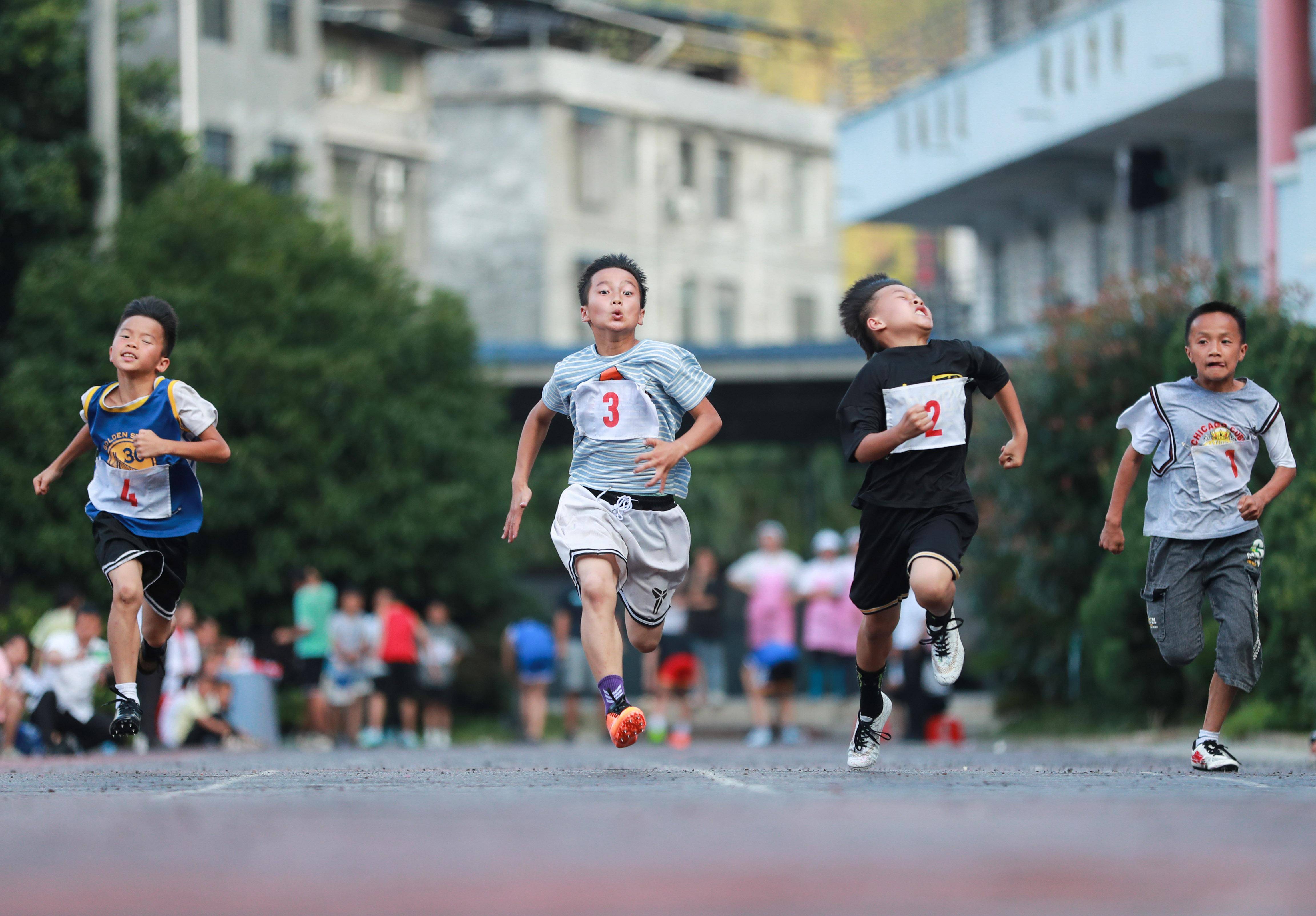 5月29日,学生在贵州省从江县刚边壮族乡中心小学迎“六一”活动上参加跑步比赛。 新华社发(罗京来 摄)