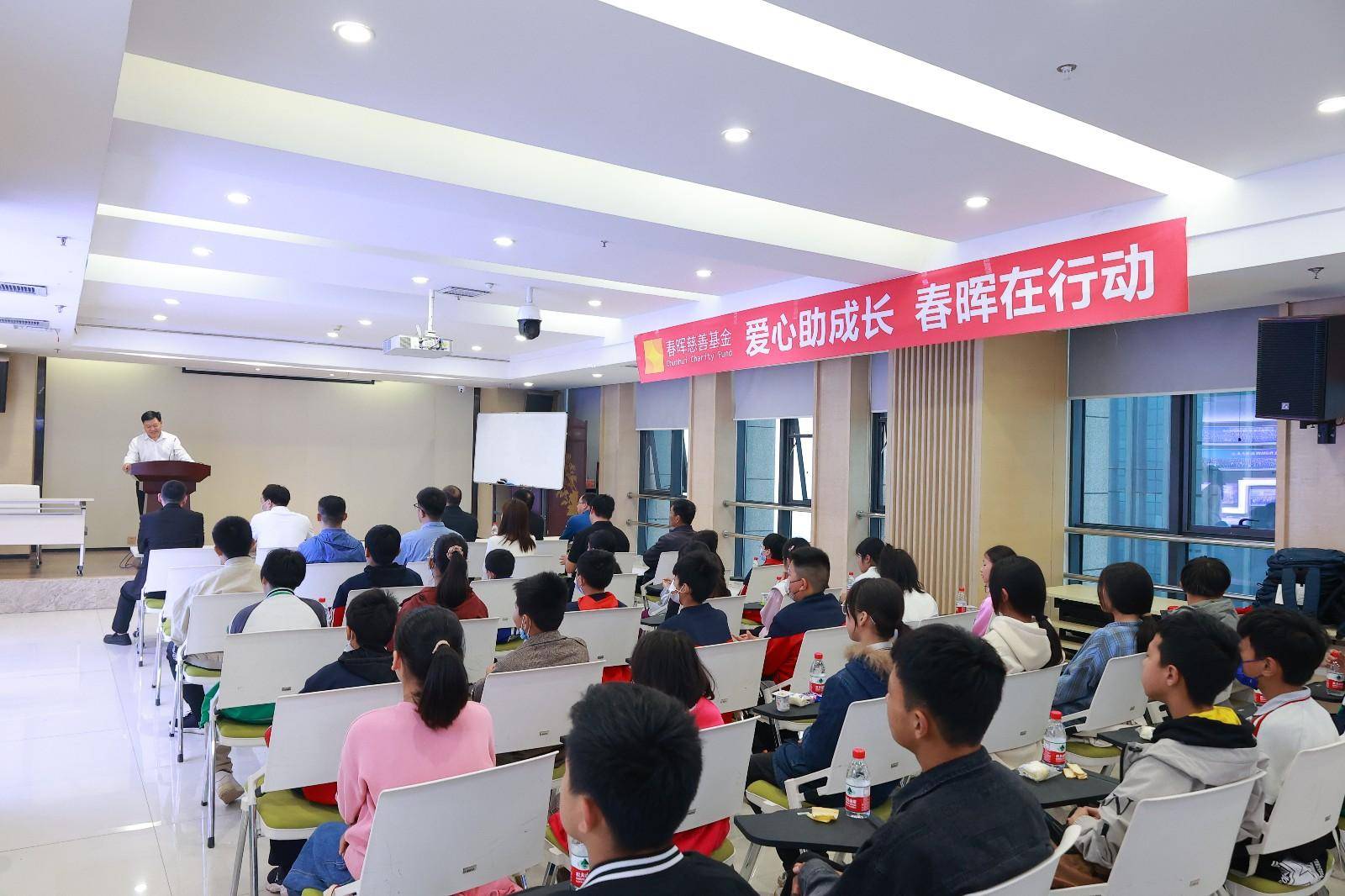 活动伊始,方大咨询总裁赵军生首先向各位同学的到来表示热烈欢迎,他希望学生们不要被困难打败,无论遇到什么事情不要放弃。勇往直前,脚踏实地,一定会走向更远大的世界,实现自己的梦想和目标。随后,赵军生讲述了方大的发展历程,他说方大咨询从2013年成立春晖慈善基金以来,近十年时间走访了1200多个困难家庭,为600多个困境儿童、困境学生、困境老人长期提供现金、物质资助及心理关爱。目前,春晖慈善基金在鲁山县尧山镇、襄城县湛北乡、开封兰考县、许昌禹州等多地建立了爱心教育基地,对教育基地学校内的困难、留守学生月月进行长期资助。