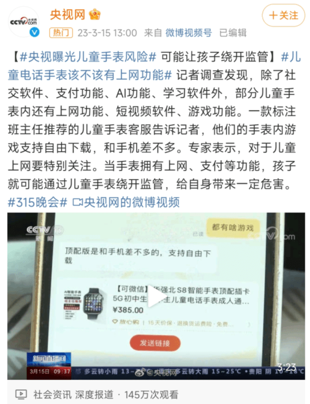 最可怕的是,此前,“3·15信息安全实验室”对电商平台一款销售量达“10万+”的儿童智能手表的测试结果显示: