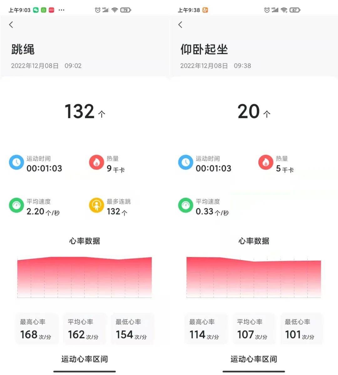 特别是在APP上,还会以表格的形式呈现锻炼的整体数据、最高分以及平均分。