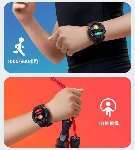 小寻电话手表Sport6-运动心率版就包括三项 独有的体能测试模式,分别为1000/800米跑、1分钟跳绳以及1分钟仰卧起坐。