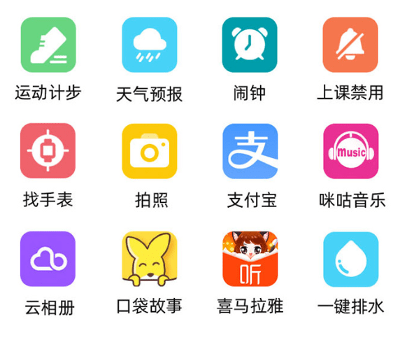 小寻内置了支付宝、咪咕音乐、口袋故事、喜马拉雅的 APP,孩子可以听儿歌、听音乐、听故事。