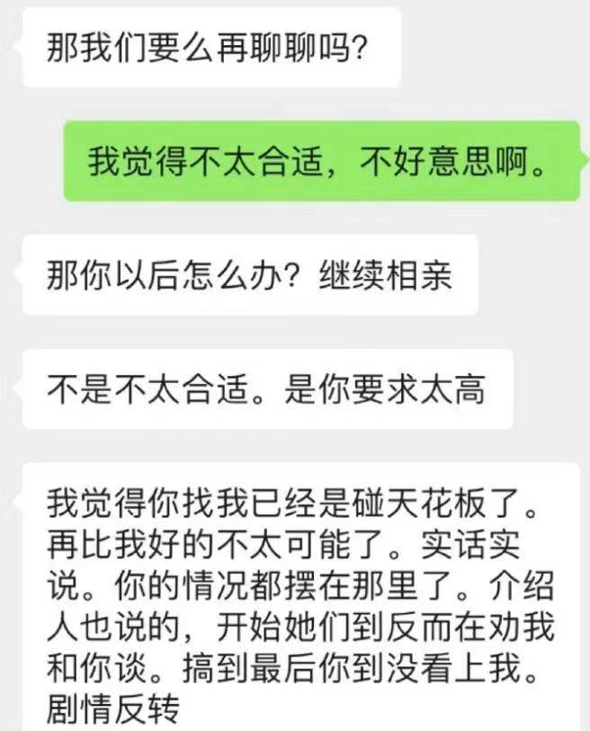 看同学们发的聊天记录,真有种小说《她从他身边逃跑,她不会飞》的感觉,玛丽苏的剧情是怎样的?2000年代后的相亲录火了,看完笑得停不下来。希望大学生不要再经历这样的事情了,真的很头疼。