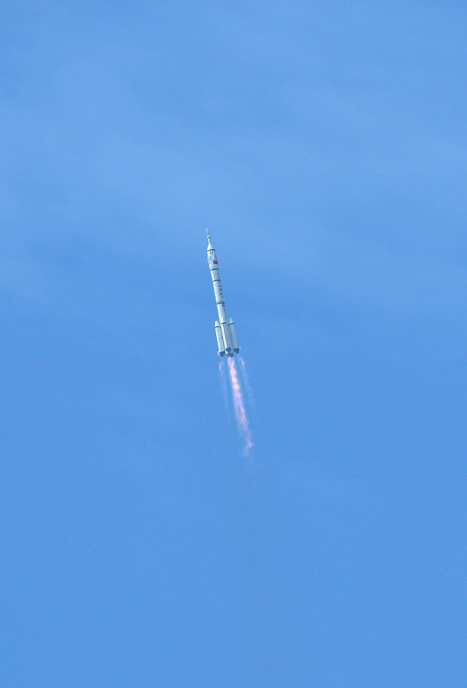 5月30日9时31分,搭载神舟十六号载人飞船的长征二号F遥十六运载火箭在酒泉卫星发射中心点火发射,约10分钟后,神舟十六号载人飞船与火箭成功分离,进入预定轨道,航天员乘组状态良好,发射取得圆满成功。 这次任务是我国载人航天工程进入空间站应用与发展阶段的首次载人飞行任务,是工程立项实施以来的第29次发射任务,也是长征系列运载火箭的第475次飞行。 新华社记者 连振 摄