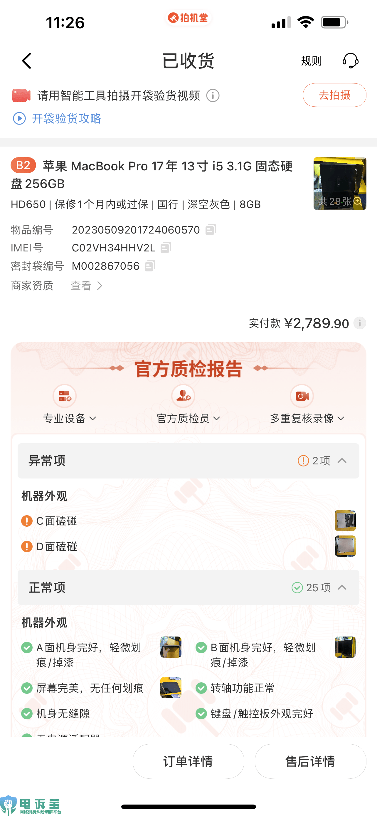 4月2日,安徽省陈先生向“电诉宝”投诉称,其于23年3月30日在拍机堂买了两部二手手机,两部都与实际检测报告有差异。其中一部华为p30pro的后置摄像头有异物,上面有好多刮痕等,都是没有在验机报告里面出来的,验机报告里面只承认有换过后壳。陈先生在拍机堂申请售后,售后以各种理由搪塞过去,称陈先生拆袋子不规范。陈先生认为,拍机堂欺骗消费者知情权,让有问题的机器流向社会,知法犯法,性质恶劣,验机纵容商家以次充好。