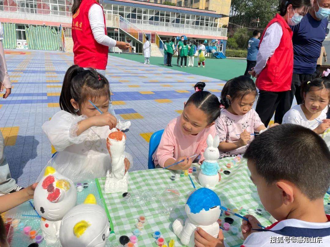 此次活动内容包含儿童义诊、垃圾分类知识讲解宣传、应急救护和乐绘彩陶、才艺展示等。简单的开场后,小朋友在老师和志愿者的指导下参与乐绘彩陶手工上色活动。