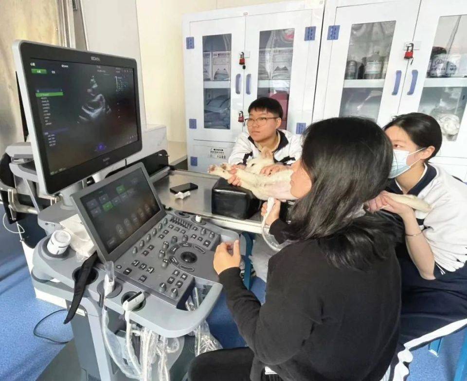 不疯魔不成活。从零基础起步的三人,在谭老师的指导下,从报名参赛那一刻开始通过查阅外文书籍、自费网络课程、加强实操等方式“死磕”比赛项目。他们每天只休息四五个小时,只为快速掌握理论知识点和精进实操技能。“实操训练结束后回家继续听网课查资料,背题到凌晨,第二天7点必须出现在实训室继续实操。”邓雪莹表示,赛项中实操是最为关键的赛点,因学院未开设课程,所以实训室没有超声垫,只能使用一台12年前的超声仪做练习,实验动物还是不安分的小土狗,及至赛前一周才使用上学院教学动物医院的彩超仪并跟着医生看诊。
