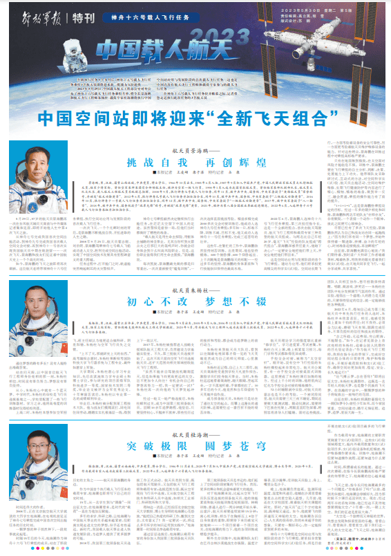 神舟十六号乘组是空间站应用与发展阶段的首个飞行乘组,要承担非常繁重的空间科学实(试)验任务,将是目前开展在轨实(试)验项目最多的飞行乘组。
