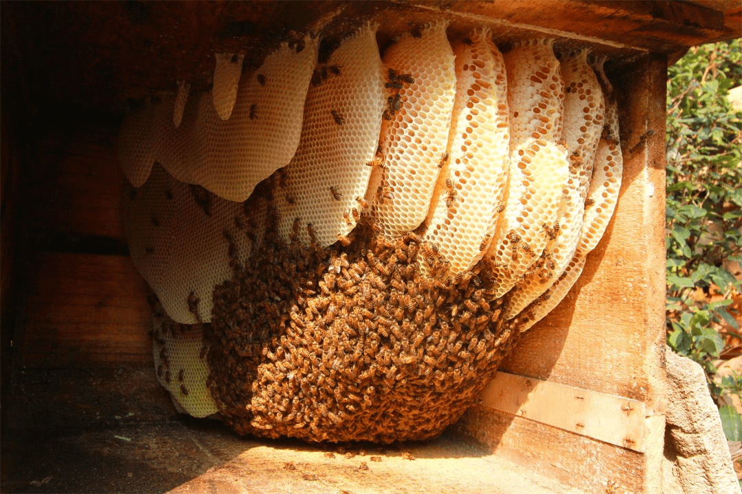 工蜂们分工合作,有条不紊的守卫、建房、采蜜。