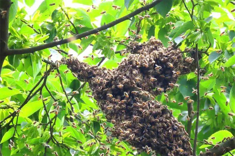 这其实是蜜蜂的分蜂群寻找新蜂巢的表现。