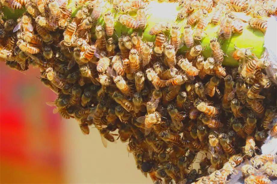 团集起来形成一个大大的蜂团把蜂王包裹其中。