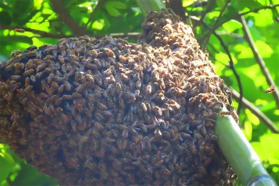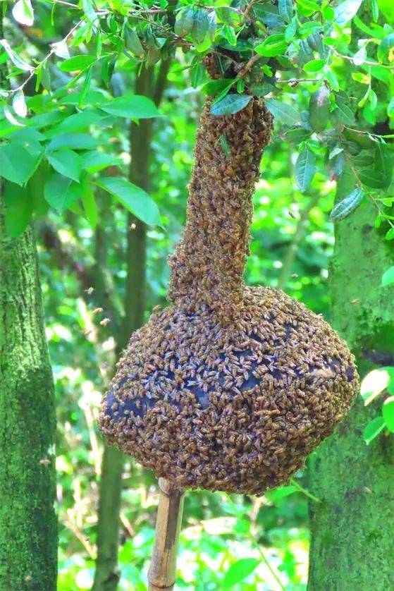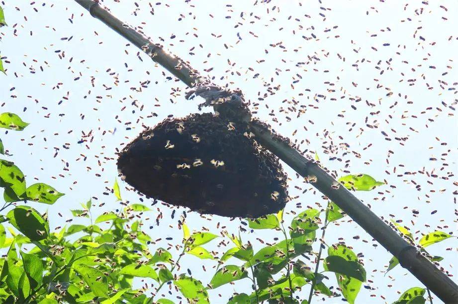 中华蜜蜂集结于树上,是自然界难得一见的奇观。
