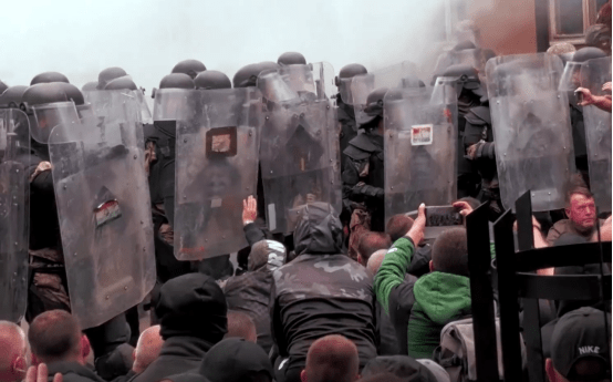 北约士兵与科索沃塞族人发生冲突(路透社视频截图)