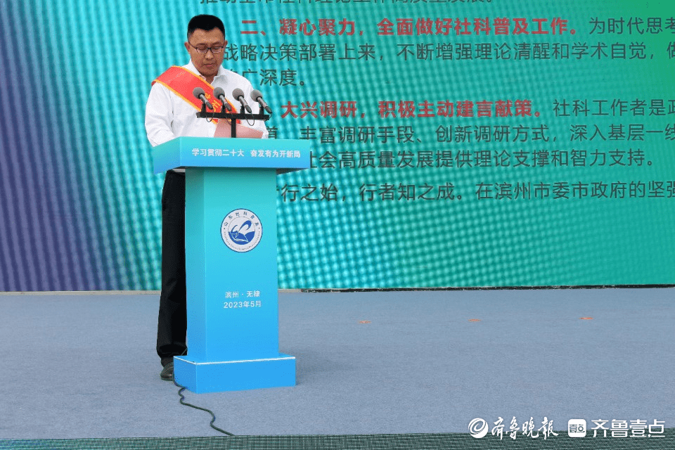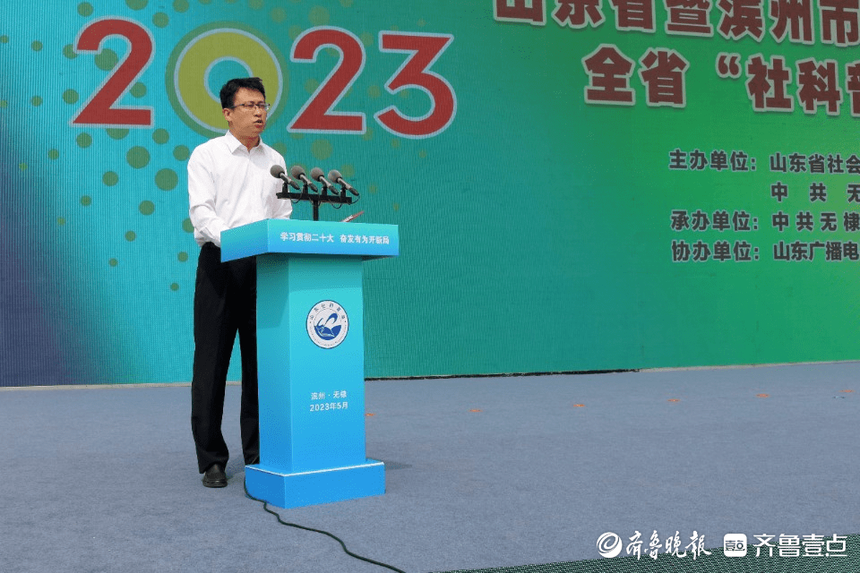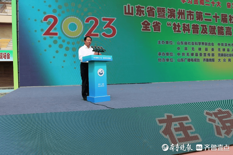 5月29日,山东省暨滨州市第二十届社会科学普及周开幕式及全省“社科普及赋能高质量发展”现场会在无棣县全民健身中心举行。活动主题为:学习贯彻二十大、奋发有为开新局。活动旨在充分发挥社科志愿服务队宣传阐释党的政策理论,培育践行主流价值,传承涵育传统文化,倡导弘扬时代新风作用,广泛开展形式多样的社科普及宣传,传播先进思想,践行文明活动,凝聚民心爱心,助力社会高质量发展。