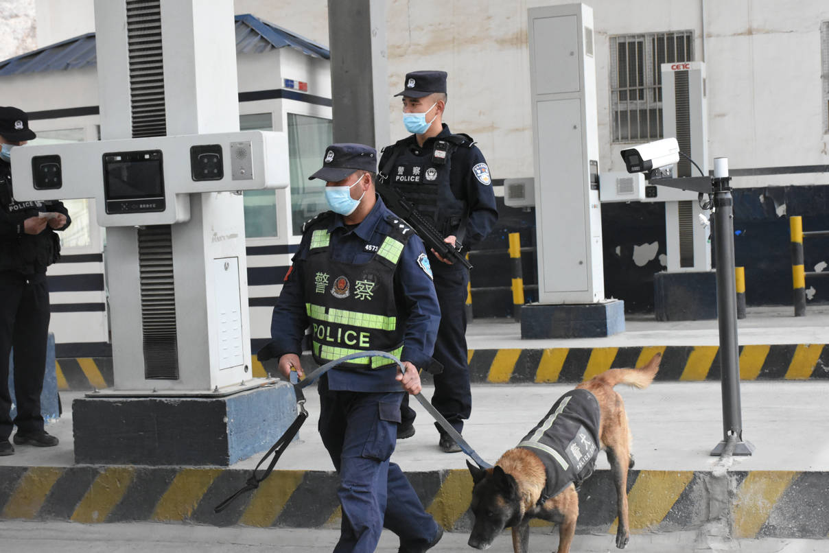 “您好!您已进入边境管理区,请熄火下车接受检查,并出示通行证和身份证……”库地边境检查站移民管理警察正在有序地开展查缉工作。