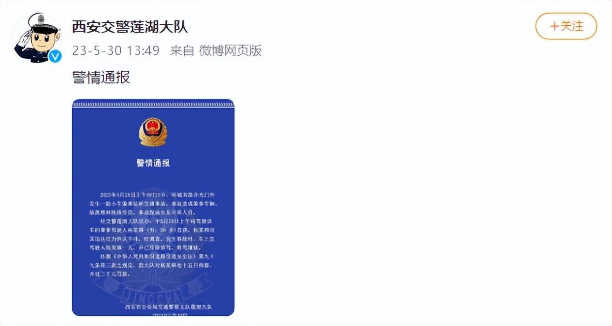 5月28日晚,西安公安交警莲湖大队发布警情通报,全文如下: