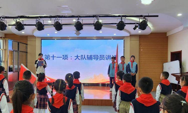 少先队大队辅导员杨老师用亲切的话语向新队员们表达了热烈的祝贺和殷切的希望,希望少先队员在星星火炬旗帜的指引下茁壮成长,在少先队这个光荣的组织中,立志向、修品行、练本领,从小听党话,永远跟党走。