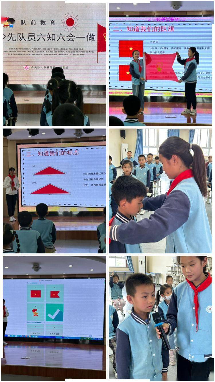 红色精神润童心,队前教育促成长。入队前,一年级同学们在学校少工委的指导下接受了队前教育,了解了中国少年先锋队的基本知识,学习了“六知、六会、一做”的基本标准,为学生时刻准备成为共产主义接班人打下基础。