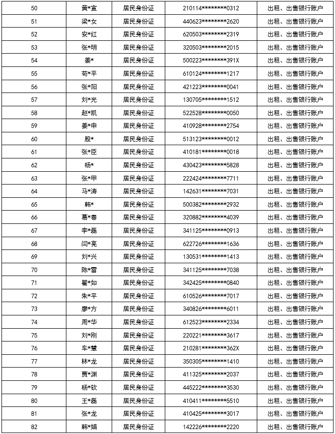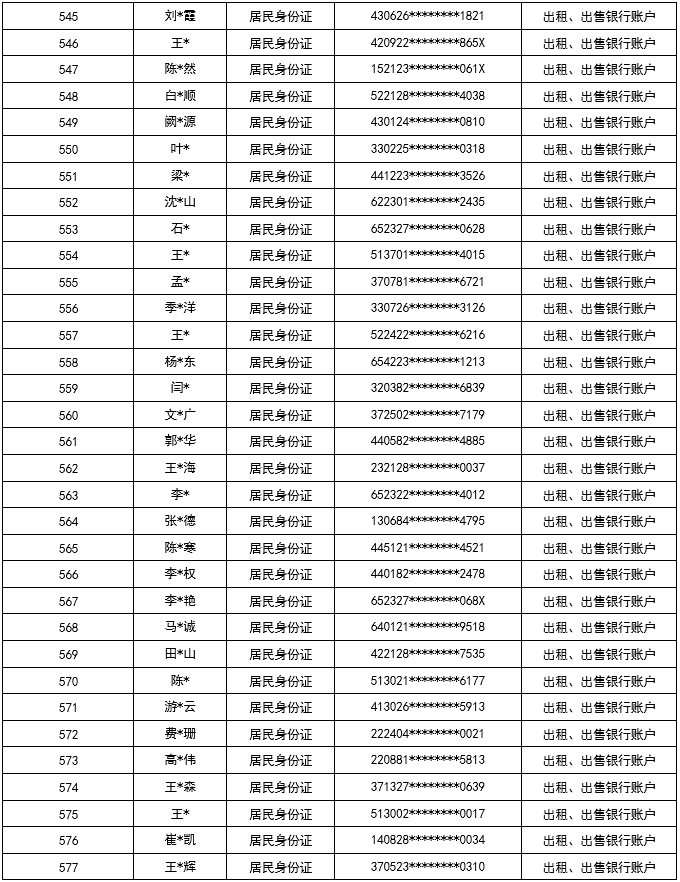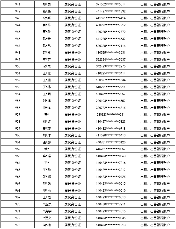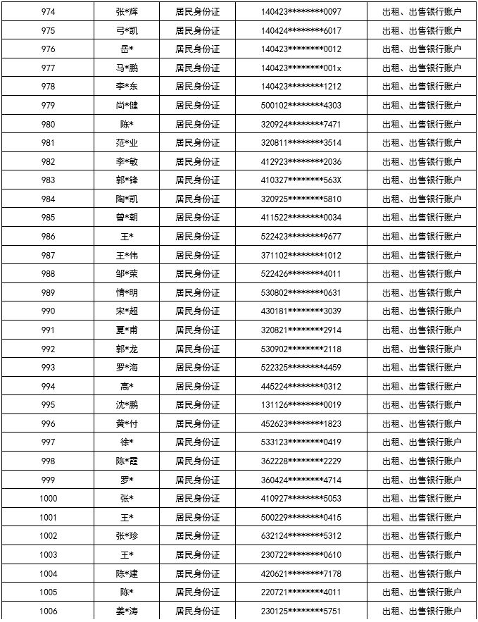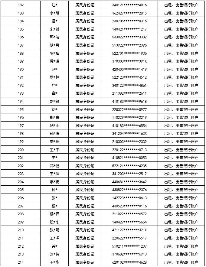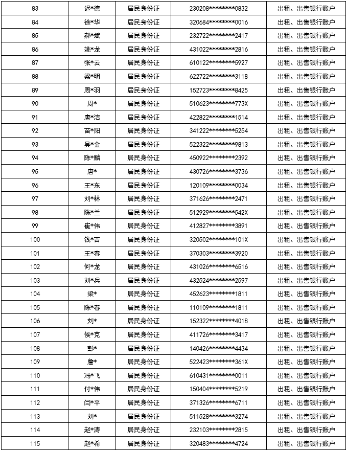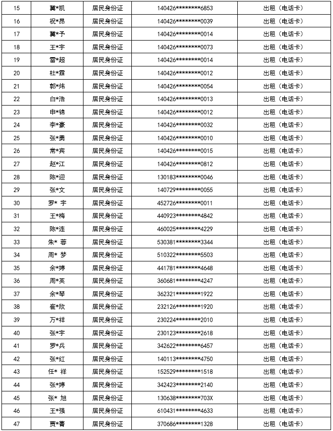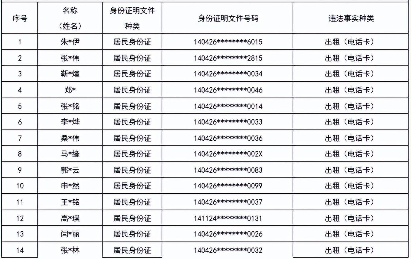 为继续严厉打击整治涉“两卡”违法犯罪活动,坚决遏制电信网络诈骗犯罪高发态势,切实维护社会治安稳定和人民群众合法权益,长治市公安局强力推进“断卡”行动,现对2023年10月份惩戒人员名单进行曝光