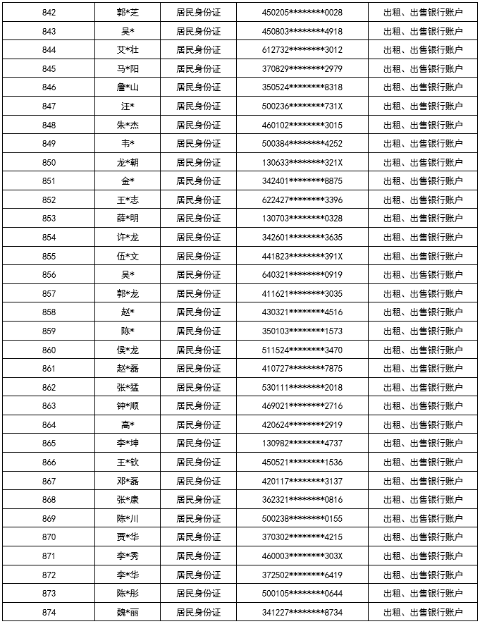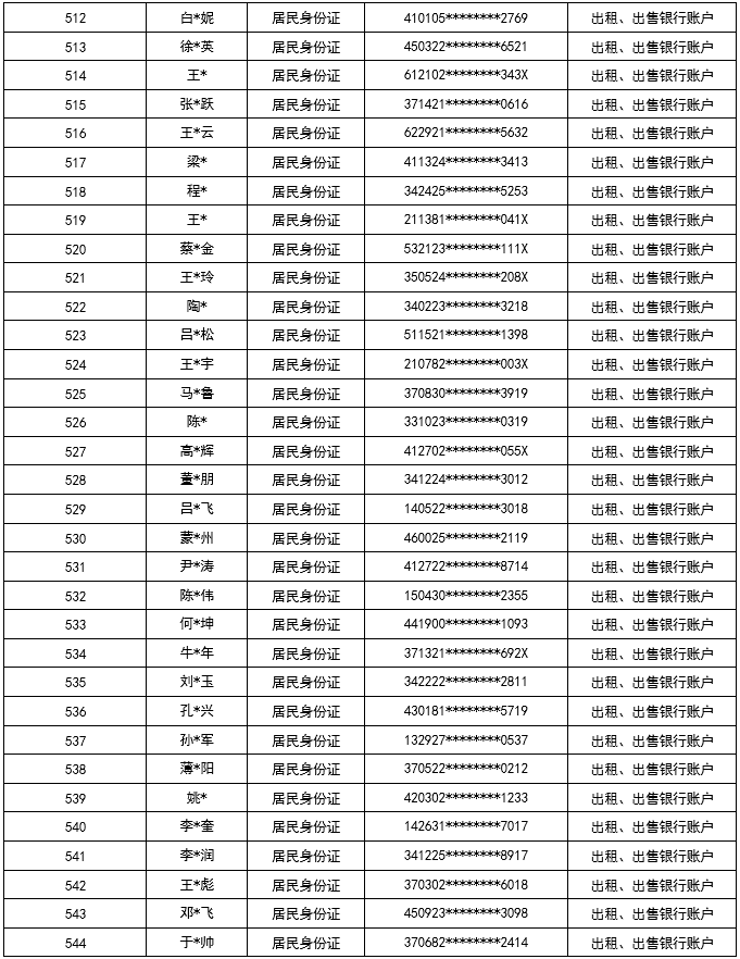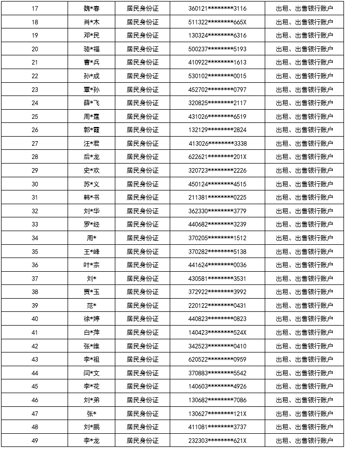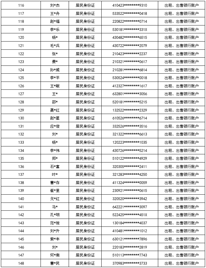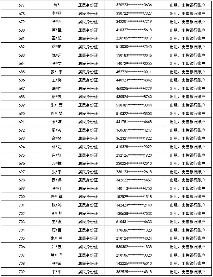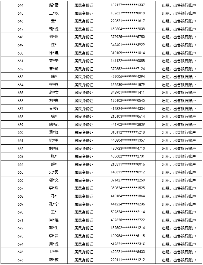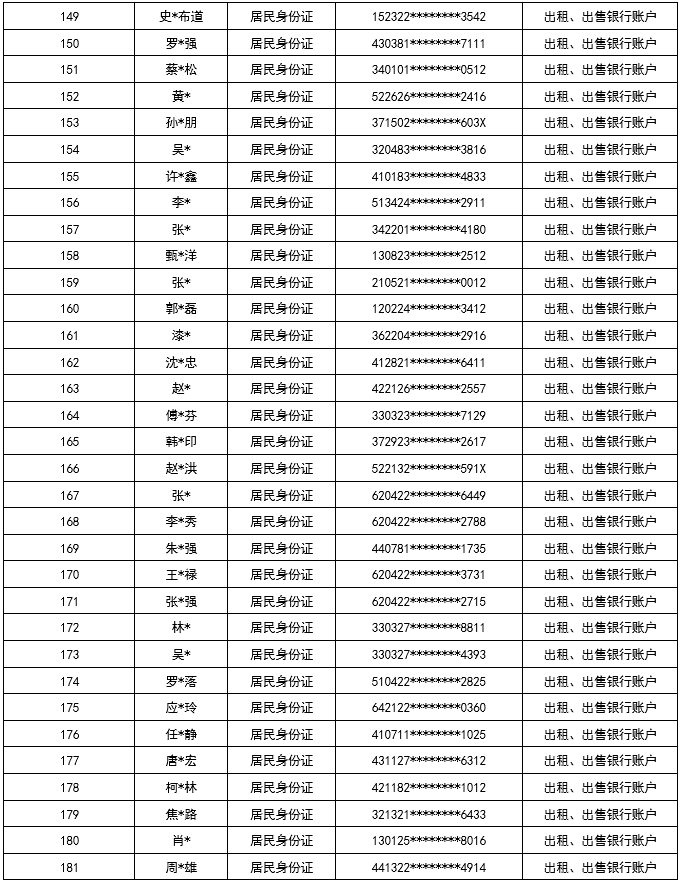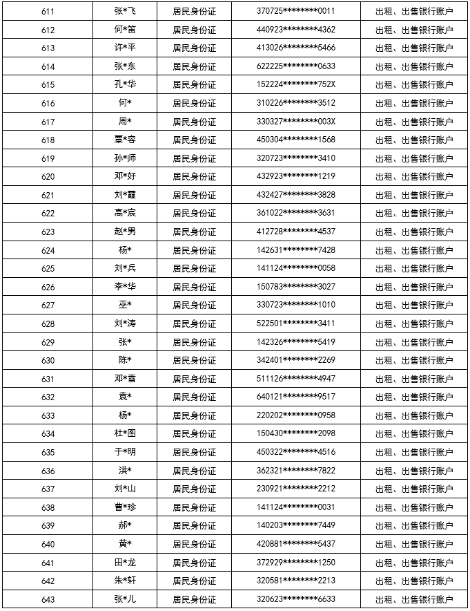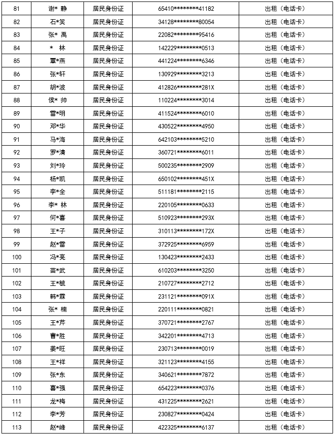 为继续严厉打击整治涉“两卡”违法犯罪活动,坚决遏制电信网络诈骗犯罪高发态势,切实维护社会治安稳定和人民群众合法权益,长治市公安局强力推进“断卡”行动,现对2023年10月份惩戒人员名单进行曝光