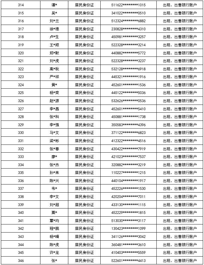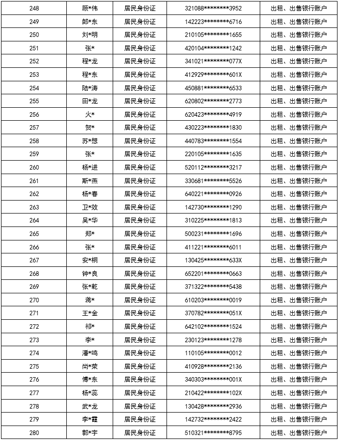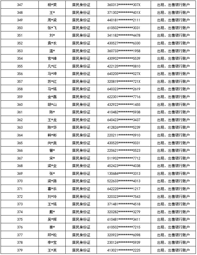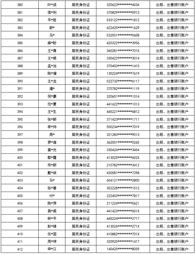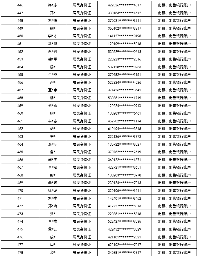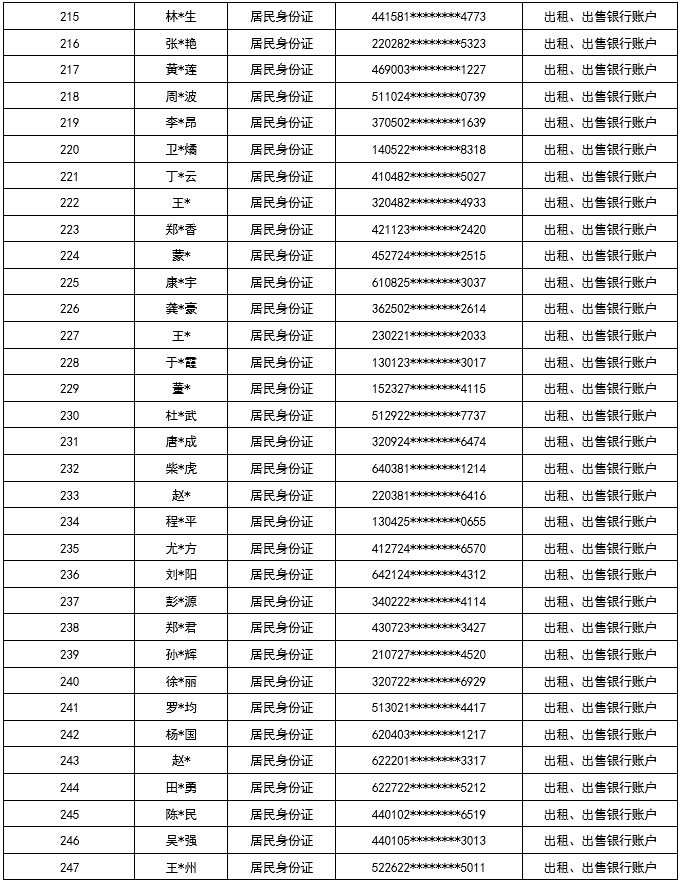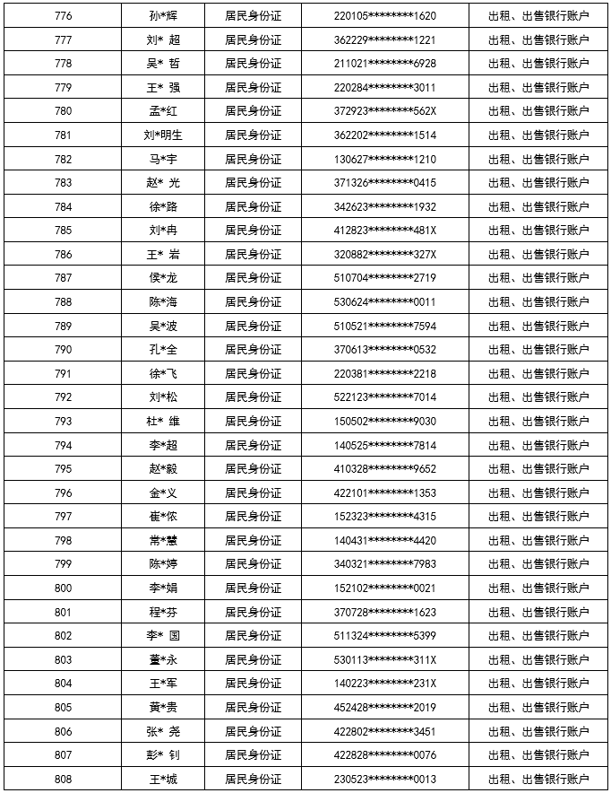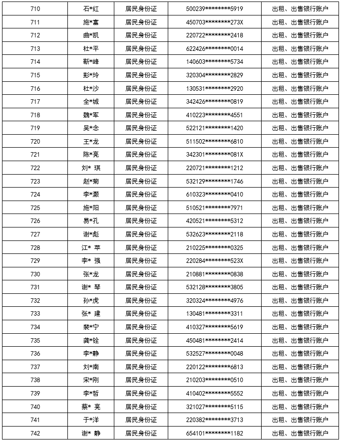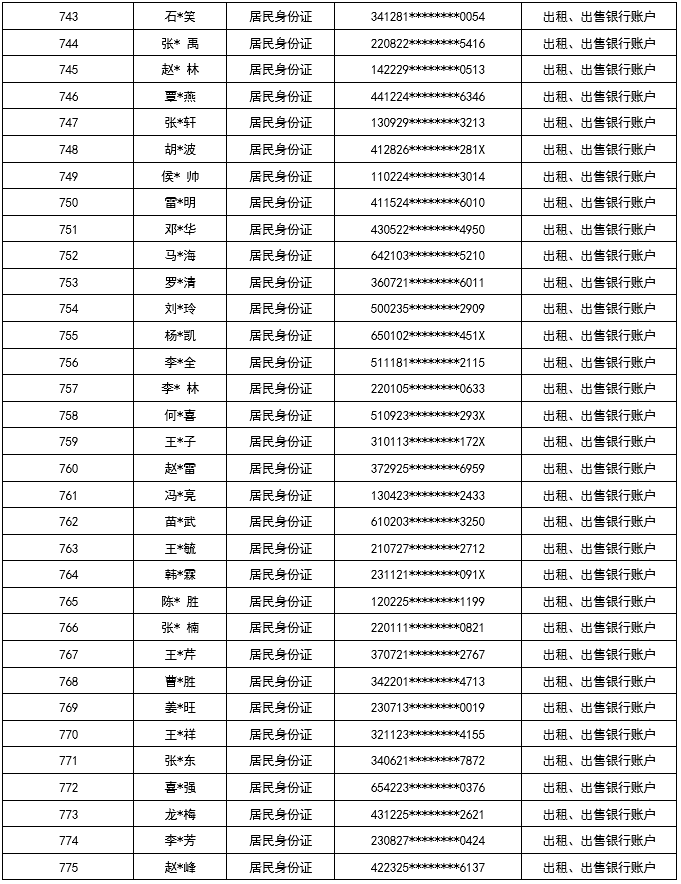 为继续严厉打击整治涉“两卡”违法犯罪活动,坚决遏制电信网络诈骗犯罪高发态势,切实维护社会治安稳定和人民群众合法权益,长治市公安局强力推进“断卡”行动,现对2023年10月份惩戒人员名单进行曝光