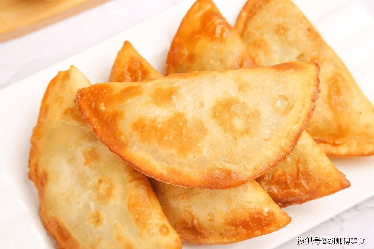 第三步:把腌制好的大葱放入到羊肉中拌匀,然后将肉末包入到饺子皮中,接着锅中放入适量的油,等油温烧到5成热时,将饺子放入到锅中,用中火将饺子炸成金黄色即可捞出食用。