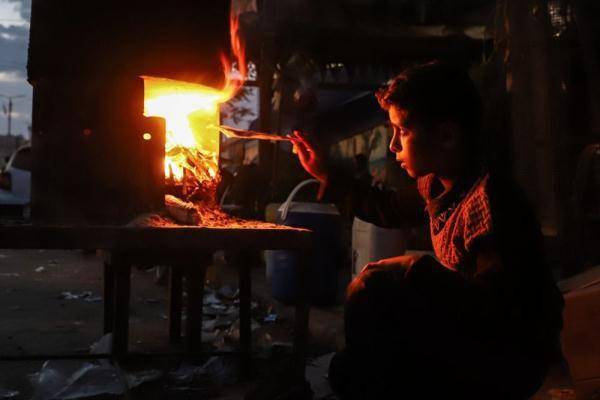 11月11日,一名男孩在加沙地带南部城市汗尤尼斯街头用柴火做饭。新华社发(里泽克·阿卜杜勒贾瓦德摄)