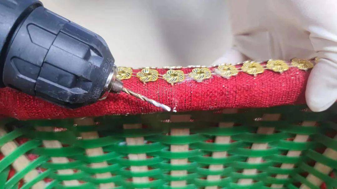 深圳邮局海关关员在对转运货物开展监管时发现,一票申报为“木槿、鳄鱼皮”的包裹机检图像可疑,随即对其开箱查验。经查验发现,该票包裹内有一个装有干货食品的木质编织篮,编织篮顶部及底部框架暗格内藏匿有白色晶体状粉末一批。经毒品快速检测试剂检测,该批白色晶体状粉末呈冰毒阳性反应,毛重1301.1克。目前,该案已移交海关后续处置部门处理。