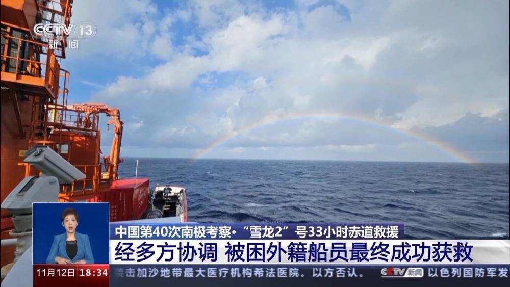 总台央视记者 李宁:现在是当地时间的11日晚上11时,考察队员已经将求救船只和人员运抵巴布亚新几内亚卡维恩附近海域,移交给当地相关组织。在这场长达33个小时的救援中,考察队员展现了专业的能力,更重要的是体现了以人为本的国际人道主义精神。稍后“雪龙2”号重新起航,前往它最终的目的地——南极。