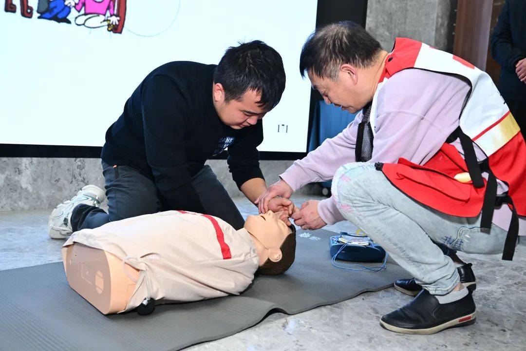 “要打开气道,我们要先检查他的口腔是否有异物,再抬高他的下颚,呈45°。”一边记着笔记,一边看老师的操作,上海韩街餐饮有限公司总经理张胜皓对于这堂急救培训课充满了好奇与期待。“我看很多媒体、抖音里面有报道突发事故,如何把握关键的5分钟抢救时间,这是非常需要去学习,有这种培训机会太好了,我们未来会邀请老师去我们公司,教更多的人。”