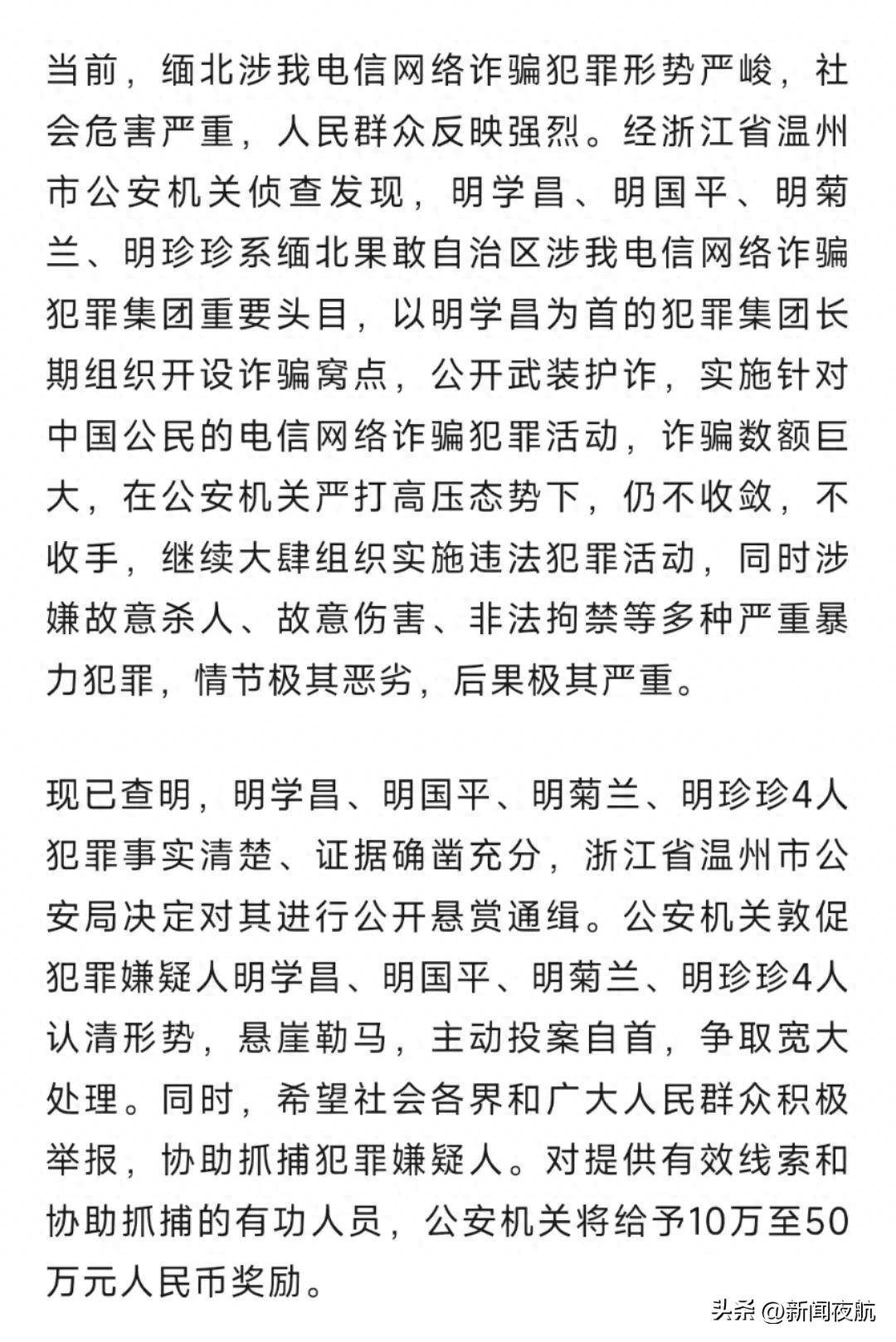 最高悬赏50万!缅北电诈四名头目被公开通缉!