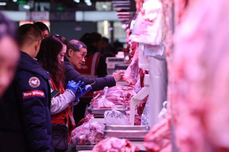 进入冬季以来,牛羊肉的销量逐渐增大,新发地综合交易大厅里的牛羊肉卖的非常火,据新发地市场宣传部副部长 谢磊介绍,近期市民对牛羊肉的需求增强了,带动了牛羊肉的销售。目前,羊的日屠宰量在1100头左右,羊肉批发价在22元/斤左右,牛屠宰量为100多头,牛肉批发价在31元/斤左右。