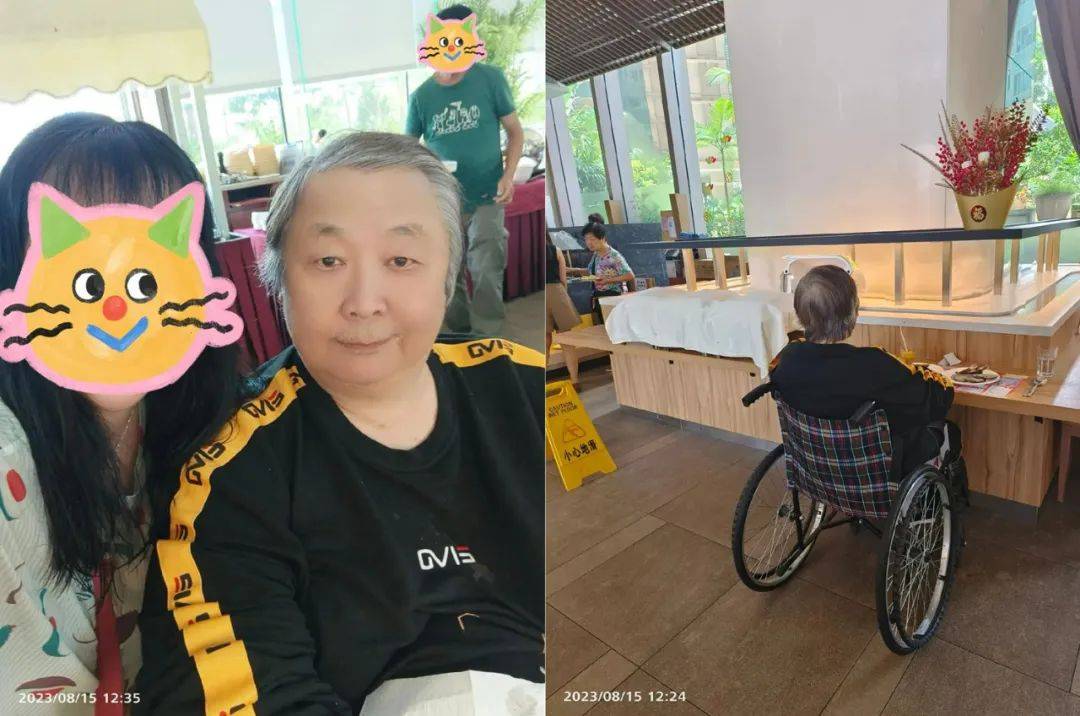 几个月前就有网友在香港偶遇秦煌在酒店餐厅用餐,一个人坐在轮椅上吃快餐,被认出后很配合跟网友合影。仔细看就发现,秦煌用的还是很普通的轮椅,并非电动轮椅,餐桌上依然有一杯冻柠茶。