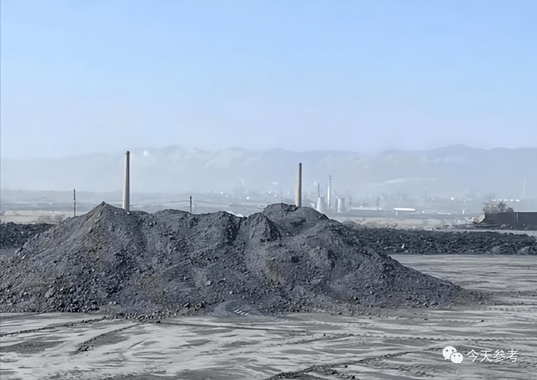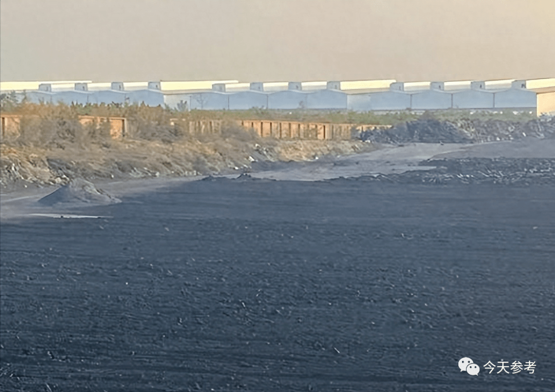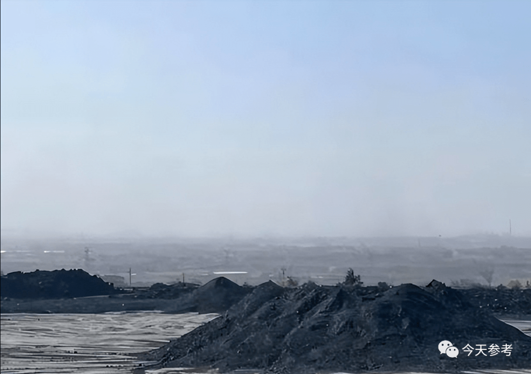 大量煤堆积杂乱没有覆盖,附近周边都被黑色的煤尘覆盖,这些没有采取任何扬尘、严重破坏当地的生态环境。
