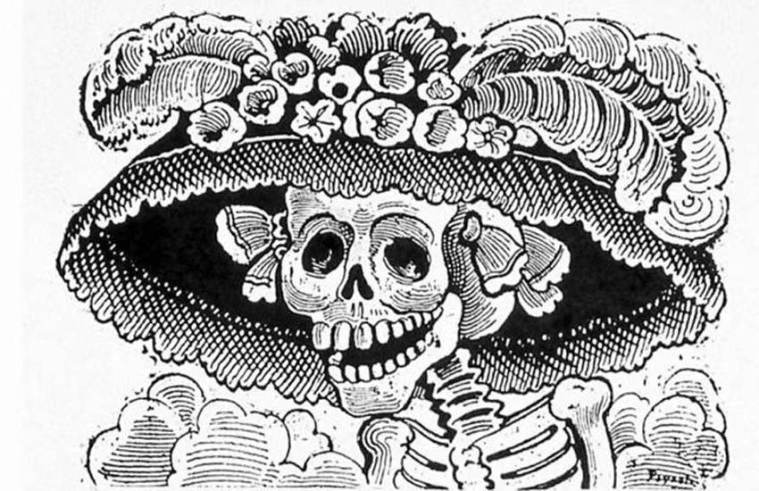 亡灵节标志性的拉卡特里娜形象,由墨西哥艺术家何塞·瓜达卢佩·波萨达创作。