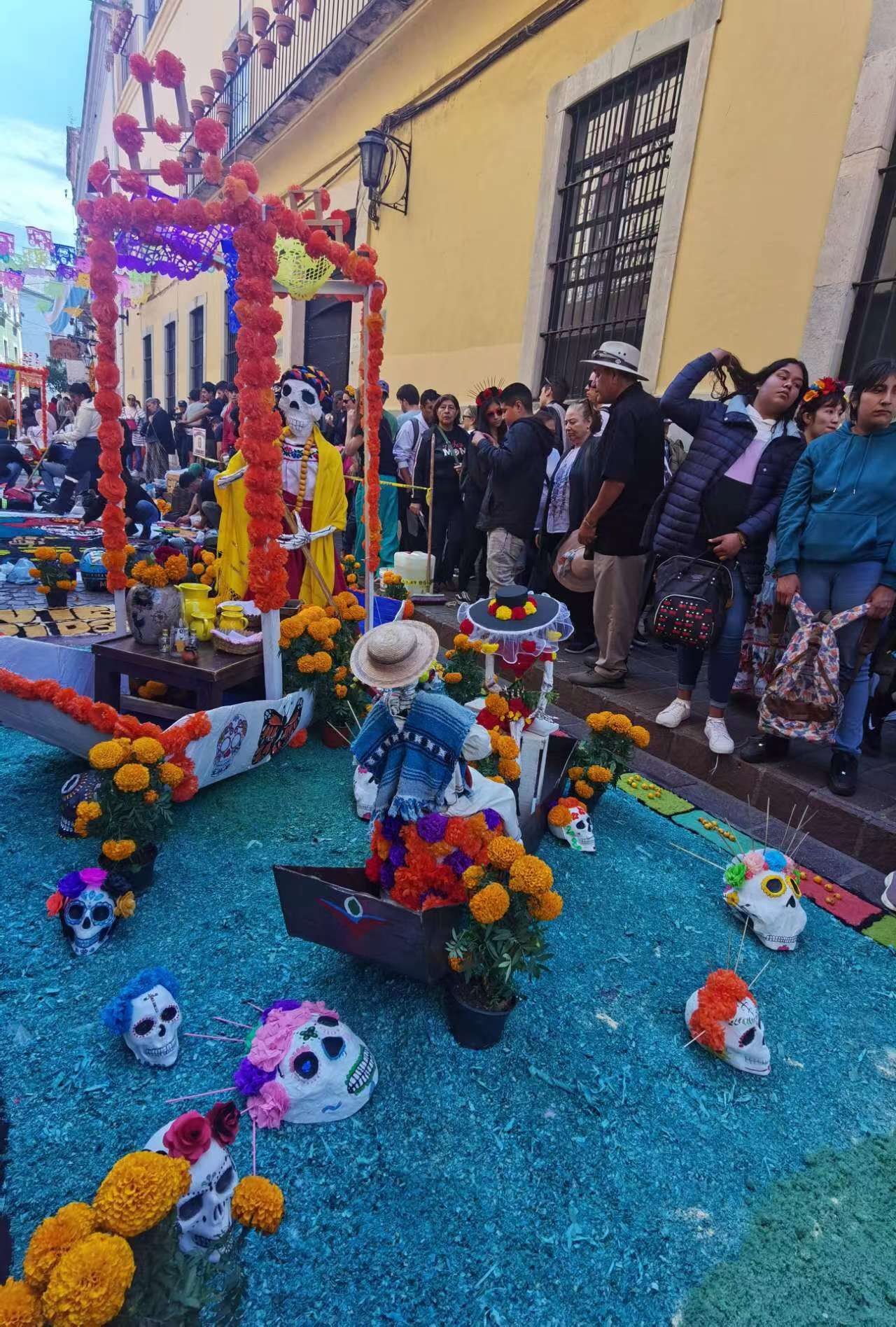 随着11月4日大游行的落幕,今年的亡灵节庆祝活动也随之进入尾声。尽管万寿菊和祭坛仿佛一夜之间消失在墨城的街头巷尾,作为着墨西哥文化图腾的骷髅却依旧随处可见。身为生活在墨西哥的外国人,对亡灵文化从恐惧到接纳的过程,又何尝不是对墨西哥人生命观的一种认可——