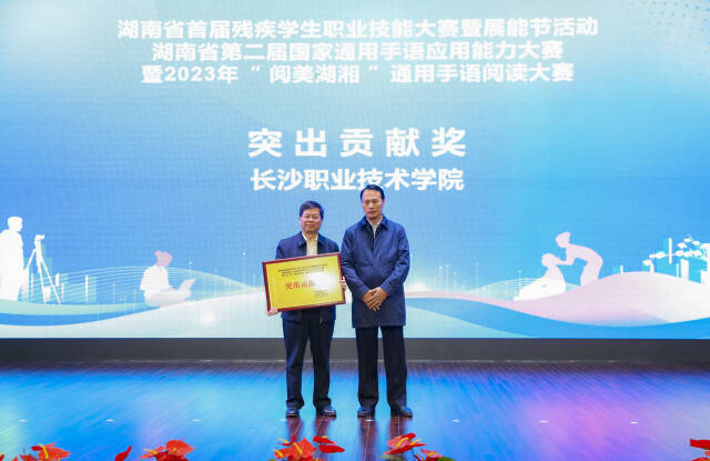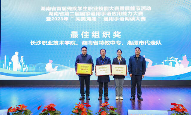 181名选手参加国家通用手语应用能力大赛,77人荣获一、二、三等奖;113个手语阅读作品参加通用手语阅读大赛,68个作品荣获一、二、三等奖,《盛世中国》等3个作品荣获最受欢迎作品奖。长沙职业技术学院荣获大赛突出贡献奖。