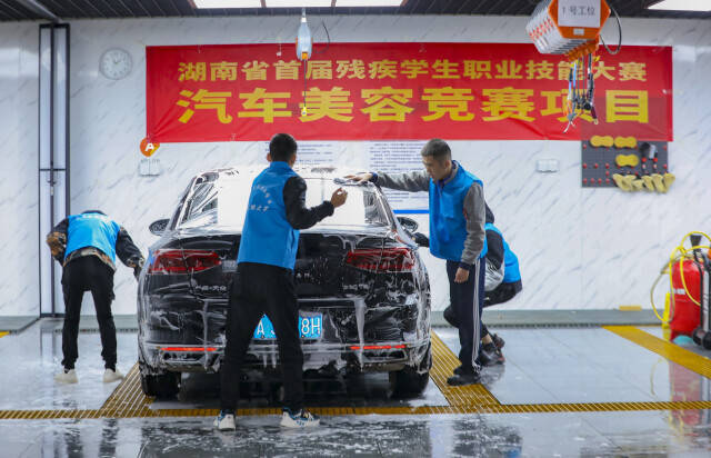 (选手在职业技能大赛汽车美容竞赛项目赛中。 通讯员 摄)